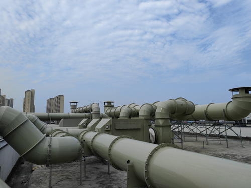 調查室直接排放物 → 活力性炭油煙凈化器器 → 引生產的風機 → 直接排放